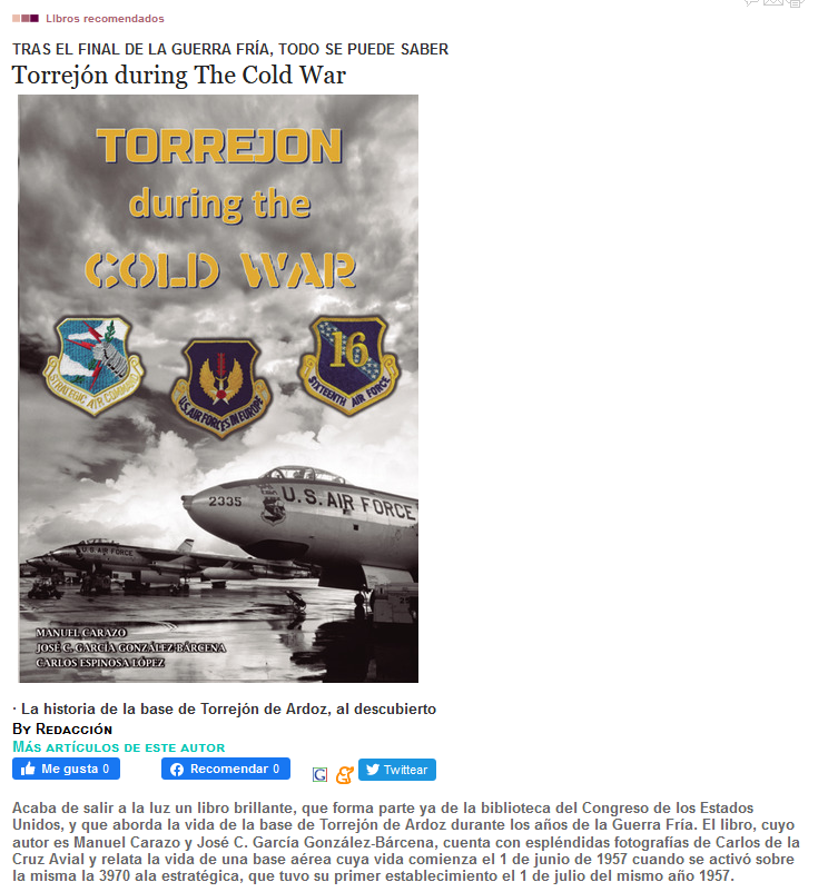 «The book’s introduction features a sort of journal entry by a fighter pilot who happened to fly one of the first F-16 fighter aircraft to be assigned at Torrejon AB, and also to fly one of the last four F-16s to leave there on his final active duty Air Force mission. This is followed by a brief chronology of the Spanish base and the American involvement in its construction and development. The authors describe the complex and controversial relationship between the United States President Eisenhower and the post WW II Axis national leader, General Franco and the political agreements between the two governments.»